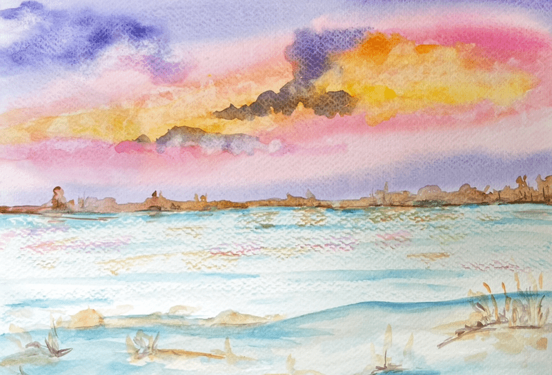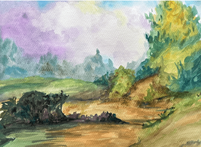 Paint a beautiful scene in watercolors. Step by step instructions and discussion on the difference between dry brush work, wet on wet, and wet on dry are included as we work together. This is a great no fear way to learn to paint in watercolors. All supplies are included.